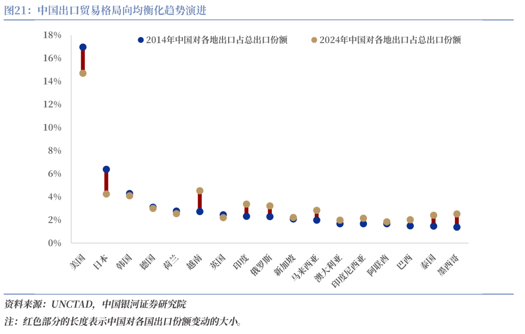 三是深化全球化布局与国际合作,从“内卷”向“外溢”转变。优化产能国际布局,引导过剩产能合理有序地“走出去”,缓解国内过剩压力,并提升全球资源配置效率。推动国内优势产业标准和技术规范国际化,增强中国在全球供应链中的话语权。提升产品国际竞争力,采用技术溢价策略,发挥税收和政策杠杆作用,鼓励高附加值产品出口。强化平台服务和知识产权保护,建立海外合规服务体系,帮助企业防范贸易壁垒风险,鼓励设立海外专利池,通过技术许可而非价格竞争拓展国际市场。
