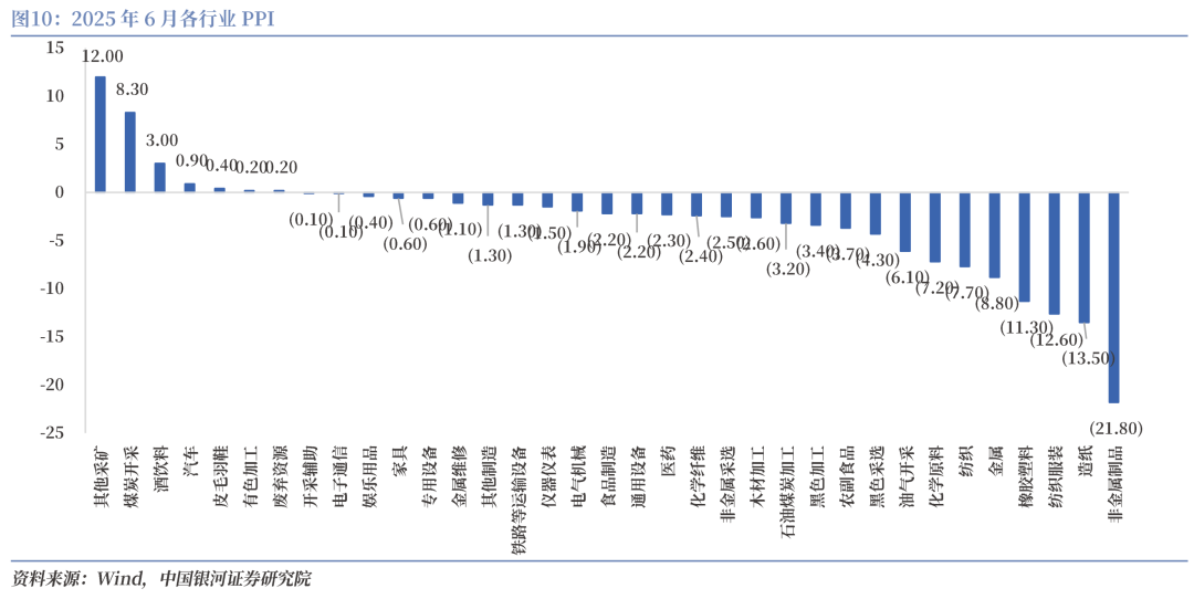 截止到2025年6月,PPI已经连续33个月录得负值,31个制造业行业中,28个持续负增长,有90%的行业出厂价在持续下行。绝大多数行业出厂价的下行是目前经济感到阵痛的原因之一,也是“有效需求不足,部分行业产能过剩”的具象化表现。不过PPI下行并不意味一定存在“内卷”。我们要区分是经济周期导致的价格下行,还是“内卷”导致的。