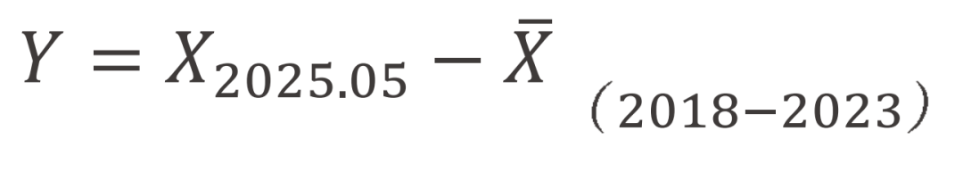 使用现值与过去均值比较区分各指标是否存在问题。不同的行业有着不同的生产周期和指标中枢,同时也存在季节性波动,而且指标的负值并不一定代表“内卷”。因此我们需要计算出每个指标的相对变化(当期值与历史均值对比)来区分是否存在异常。2018年,我国已经结束上一轮供给侧改革,统计数据也进行了一定程度的修正,因此我们使用2018年作为历史区间起点;而区间终点我们定为2023年,与当期值进行一定隔离避免数据惯性造成影响。计算方法为2025年5月的当期值减去2018-2023年的历史均值。并使用T检验来验证数值是否具有统计学显著性。